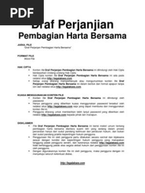 Download Draf Perjanjian Pembagian Harta Bersama