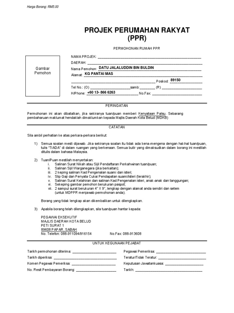 Borang Permpohonan Projek Perumahan Rakyat Pdf