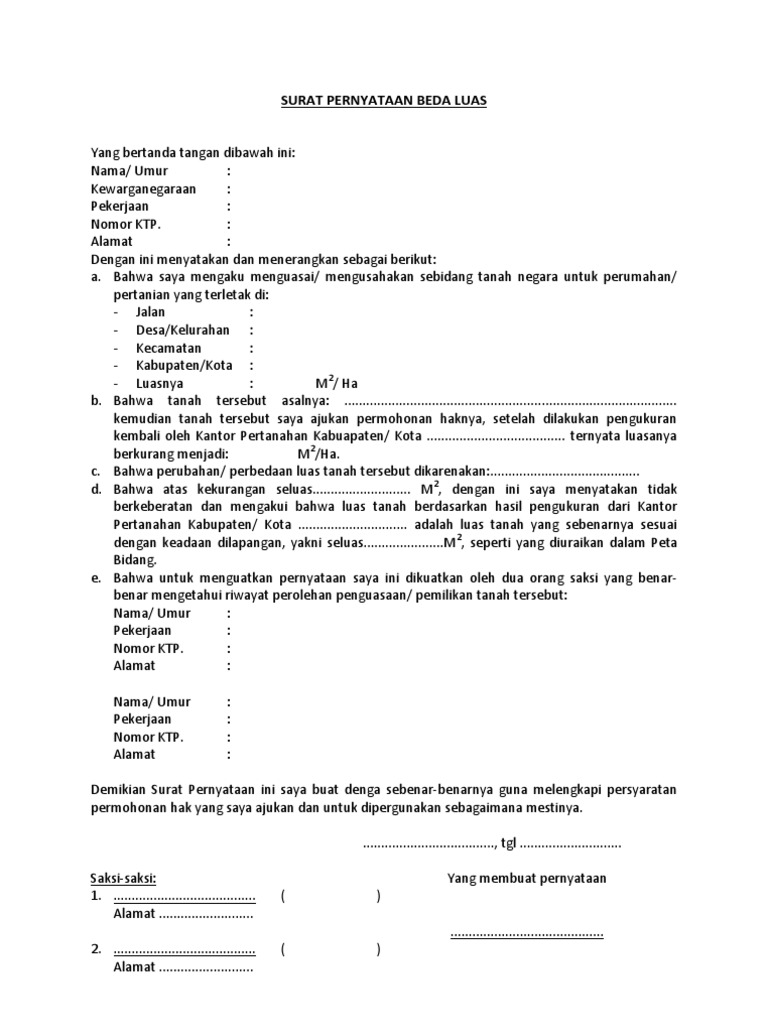 Surat Pernyataan Beda Luas