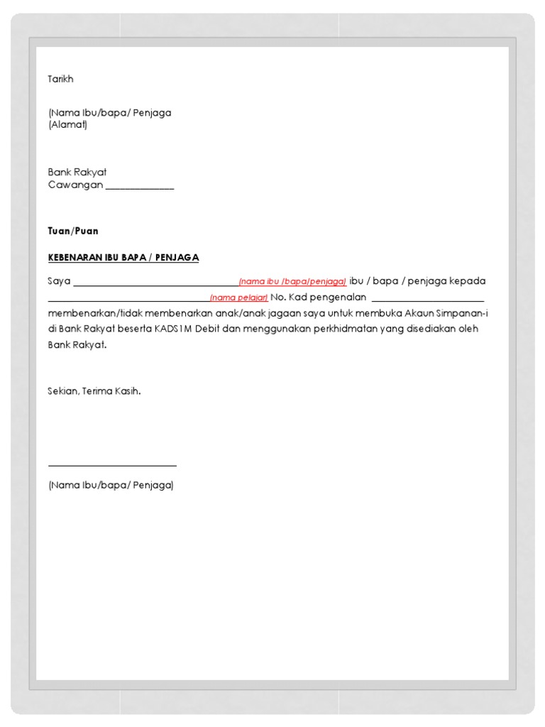 Contoh Surat Kebenaran Membuka Akaun Simpanan I Di Bank Rakyat