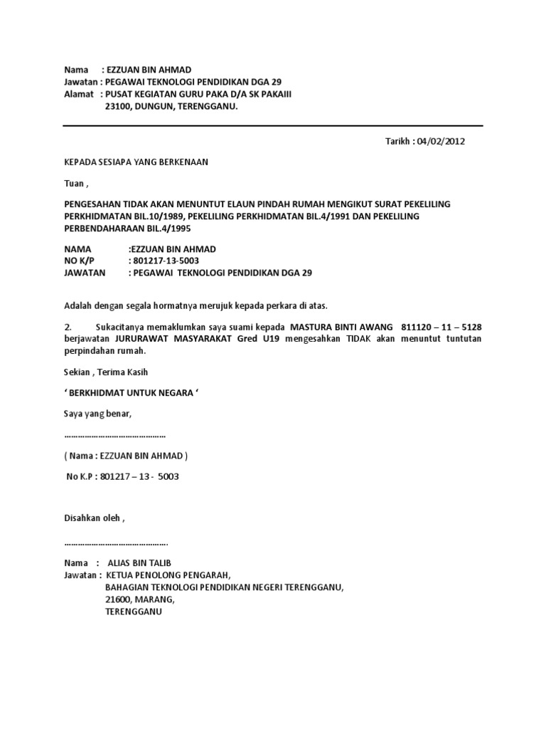 Contoh Surat Tuntutan Elaun Pindah Rumah Situs Properti Indonesia