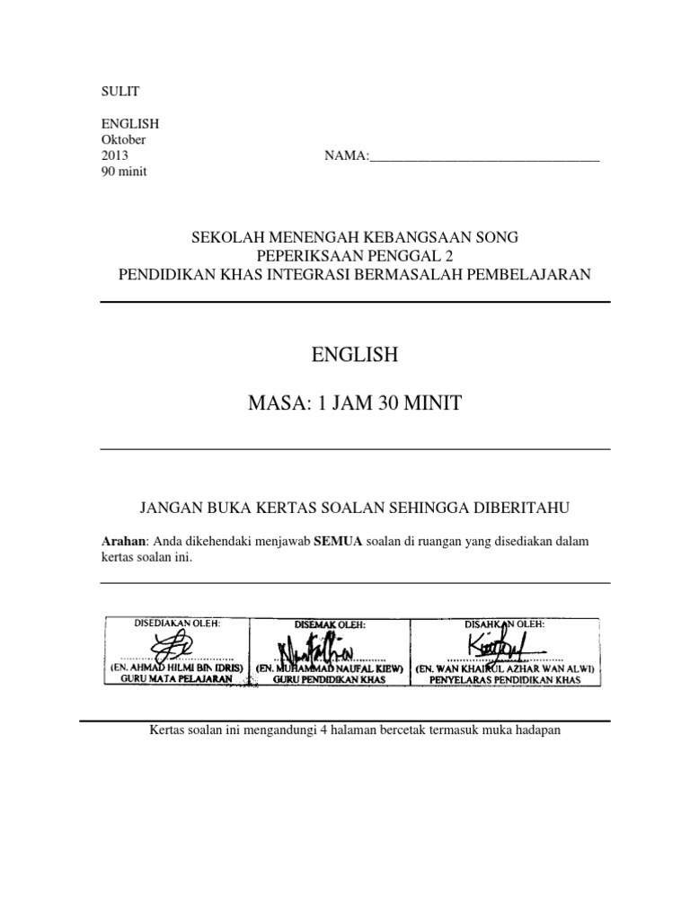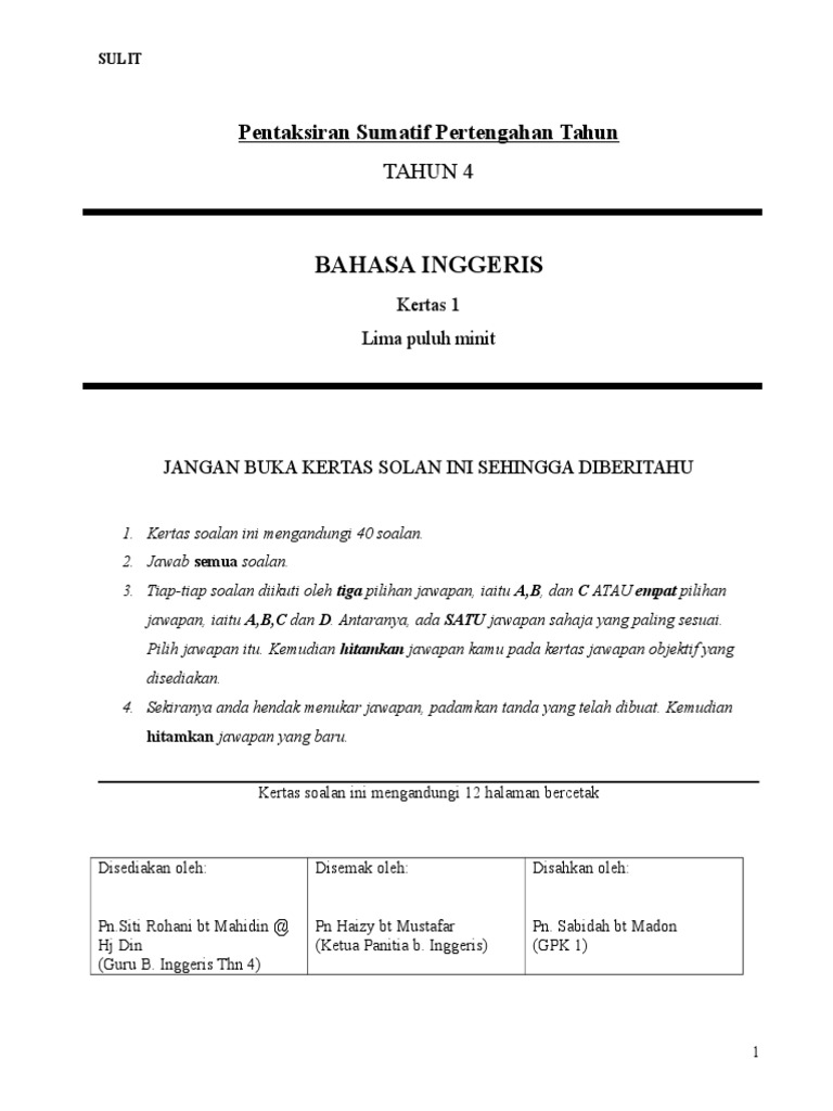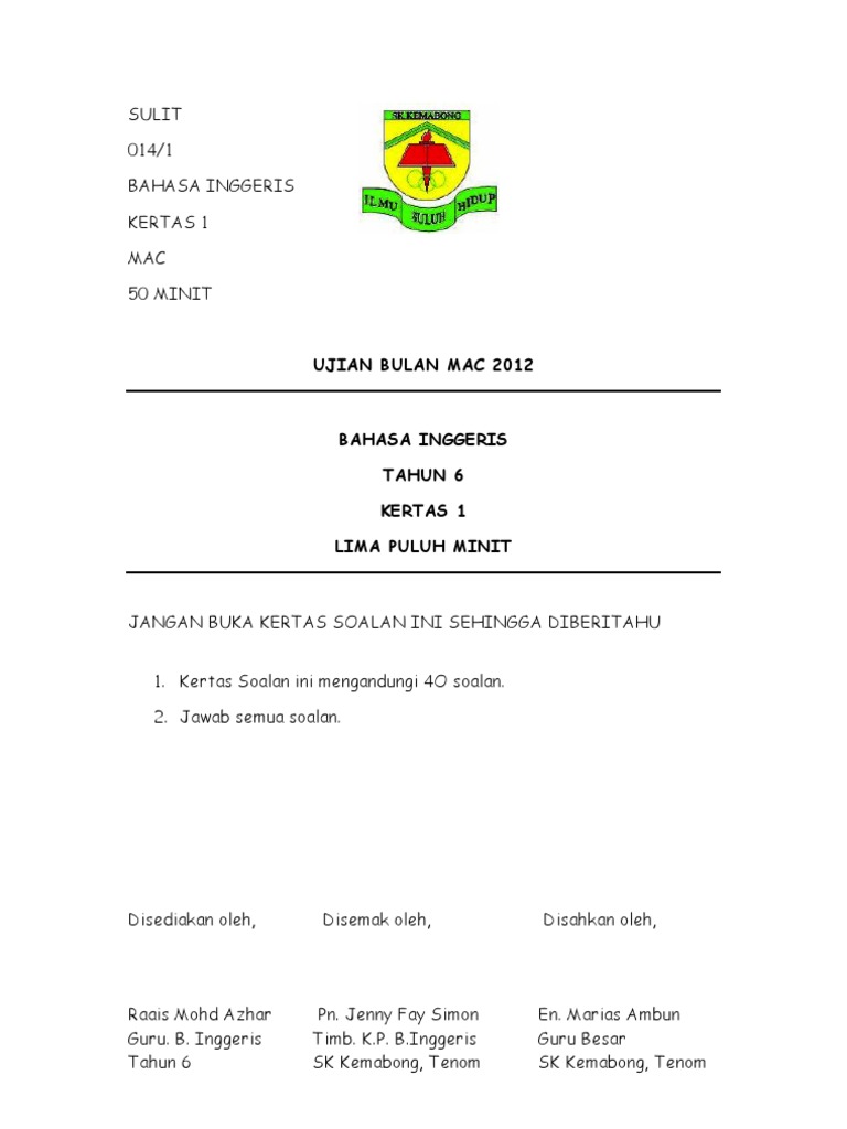 Ujian English Year1 Paper 2 Kssr
