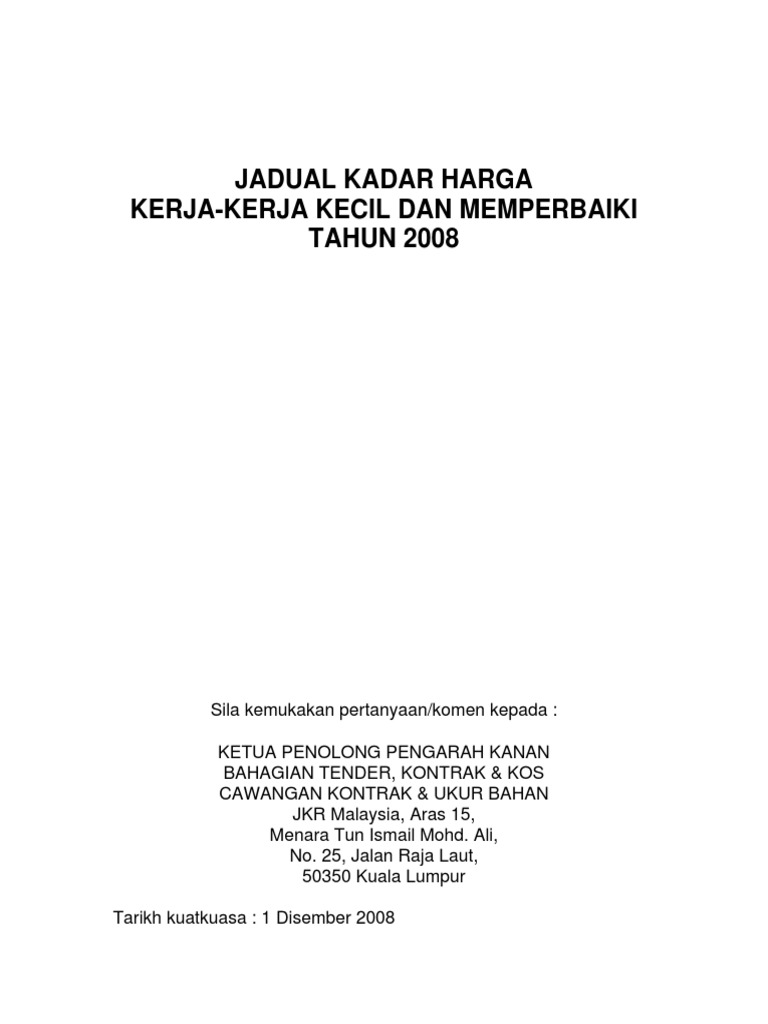 Jadual Kadar Harga Jkr 2008 Pdf Document