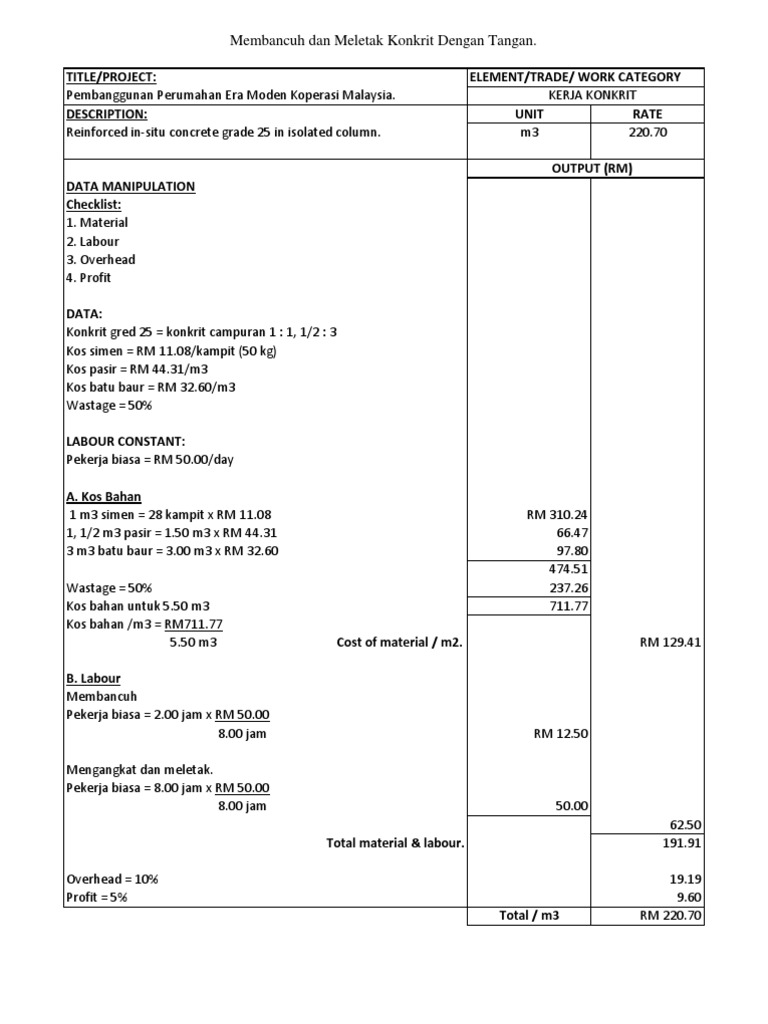 Cost Studies Anggaran Kos Kerja Bangunan Pdf Document