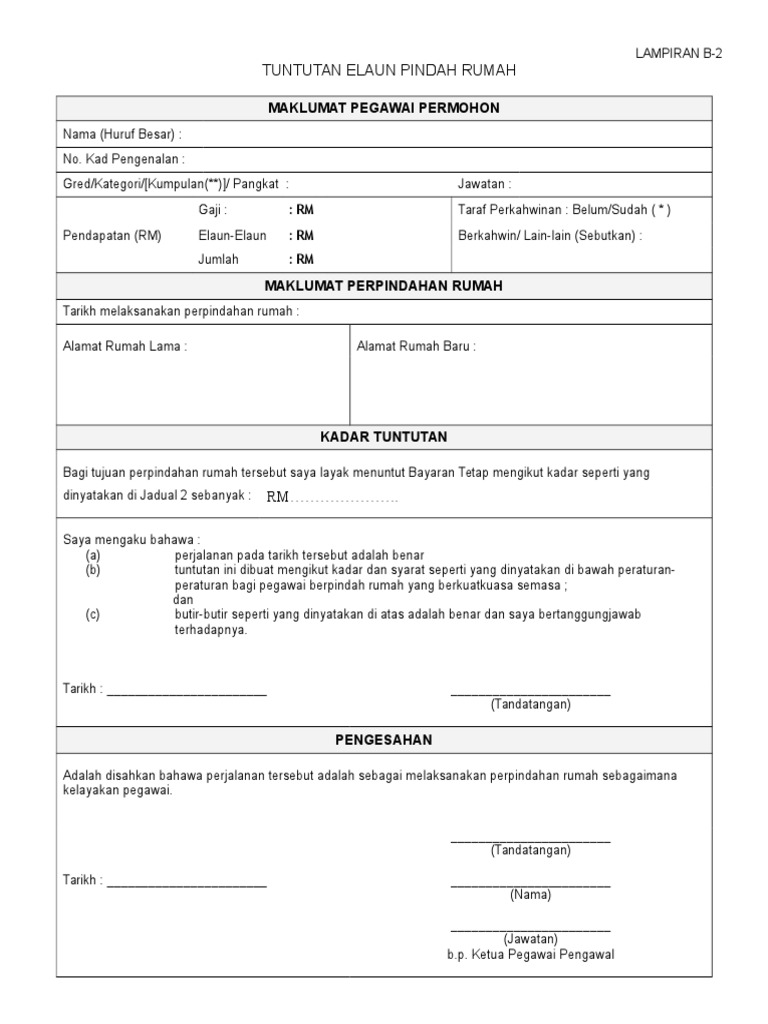 Borang Tuntutan Elaun Perpindahan Rumah Pages 1 1 Text Version