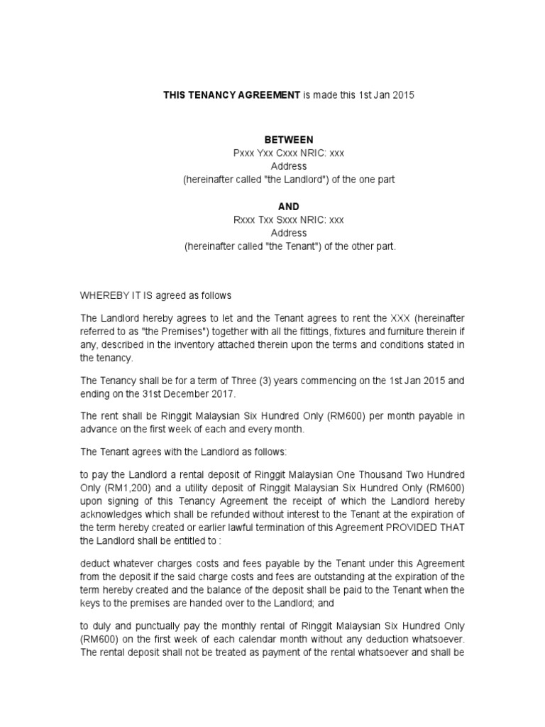 Sample Letter For Termination Tenancy Agreement Lease The Tenant